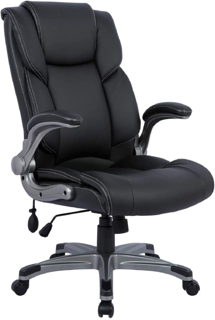The bonded leather on this chair is made to take on tough and long workdays without complaint and you will love that the high back will support your lower back, your shoulders, and your neck. You will be able to attend to back pain and neck pain with ease in this chair. This is a sturdy and reliable chair that will hold up to tough use without any issue.