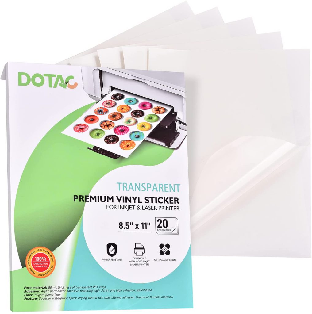 ![]() | DOTAC Clear Printable Sticker Paper | $$$ | 4.5 stars | Best transparent | Amazon |